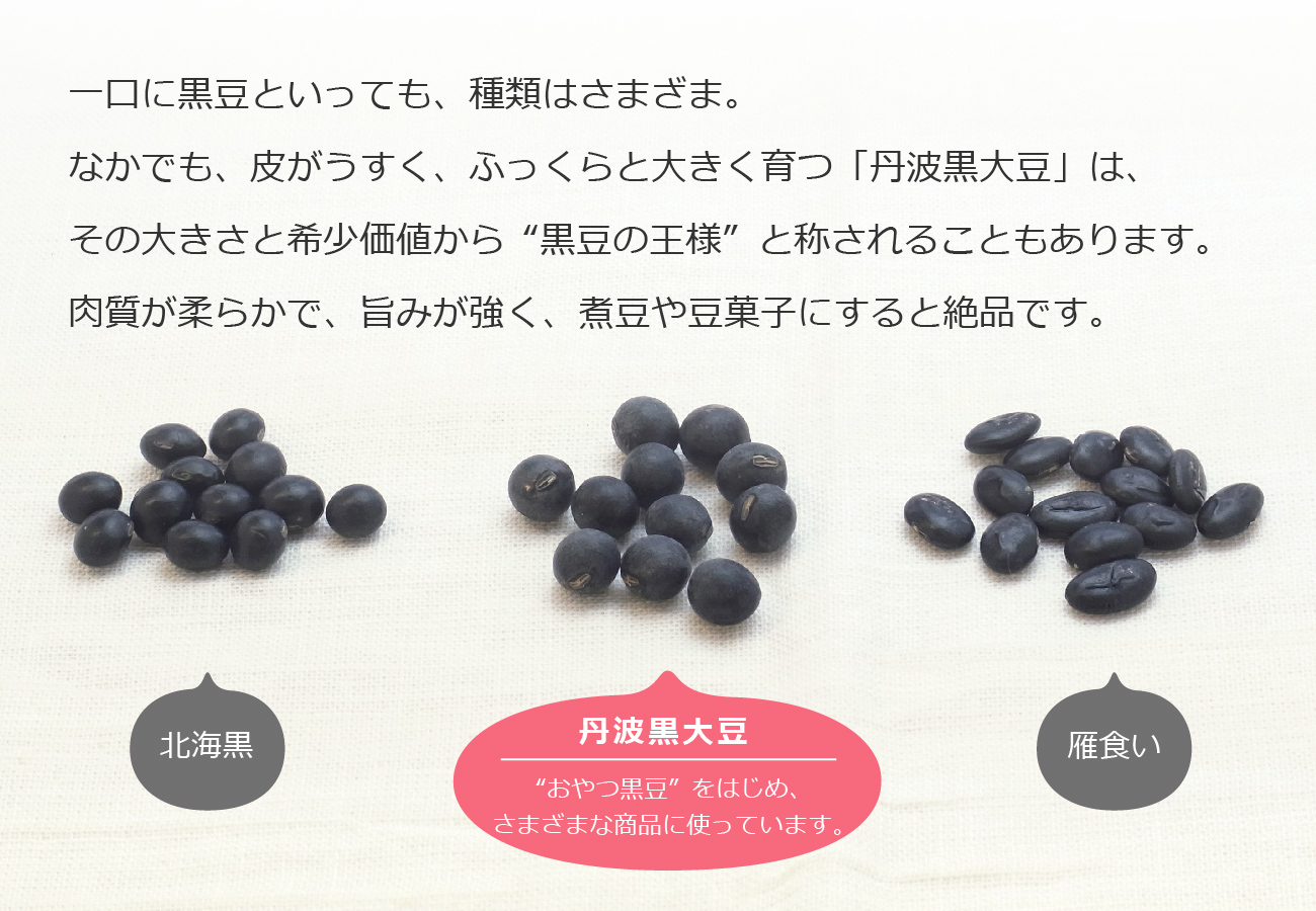 "おやつ黒豆"は国産丹波黒大豆で作った、