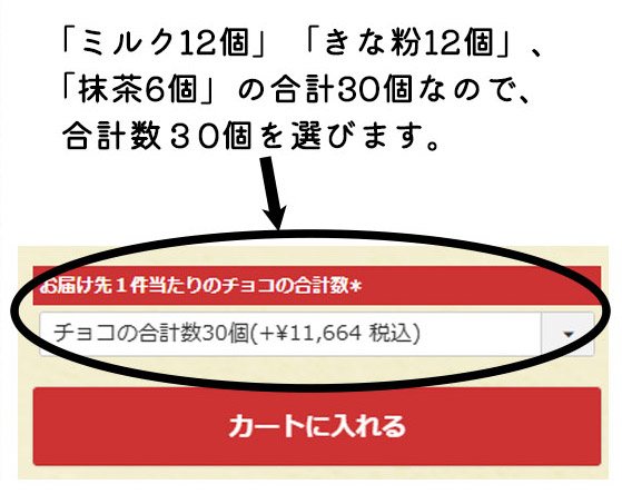 ①で選んだチョコの合計数を「お届け先1件あたりのチョコの合計数」の欄から選びます。