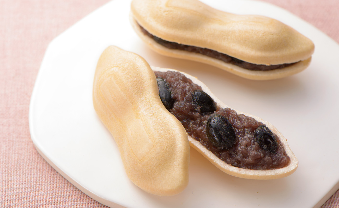 ふっくらと柔らかい大粒の黒まめを、風味ゆたかなあずき餡に合わせた、お手作り最中です。 莢のかたちもかわいらしい最中皮に挟んでお召し上がりください。