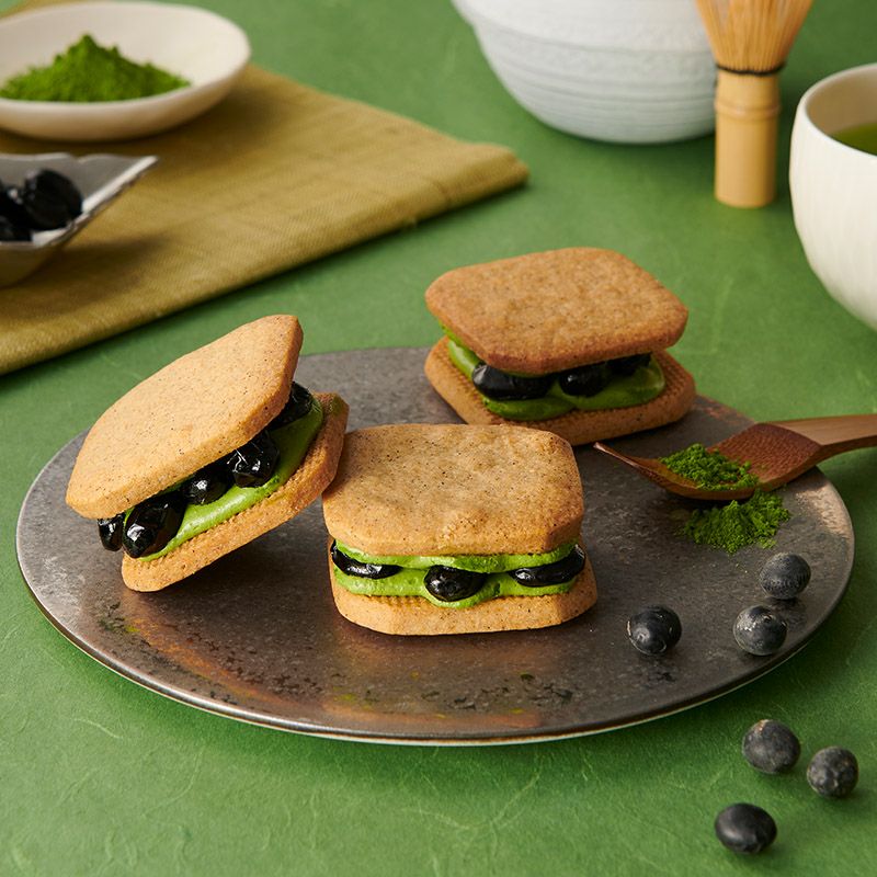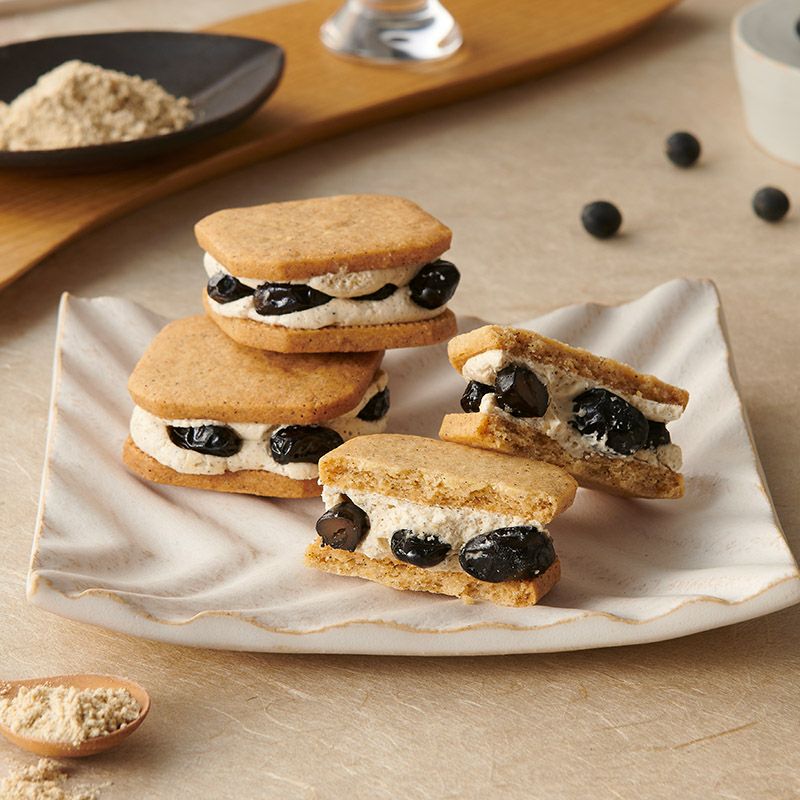 四季折々のおいしさをバタークリームにかさね、黒豆きなこが香るクッキーで挟みました。