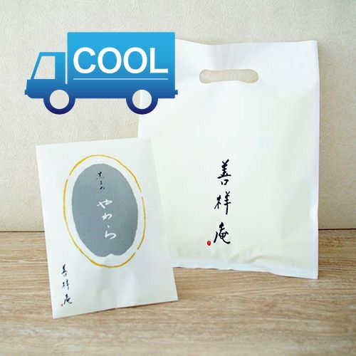 善祥庵-クール便専用資材クール便でお届けできるプラスチックの手提げ袋と、カードをご用意しております。