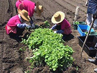 苗の成長とともに、茎を保護・補佐するため土を高く盛り上げる「土寄せ」。