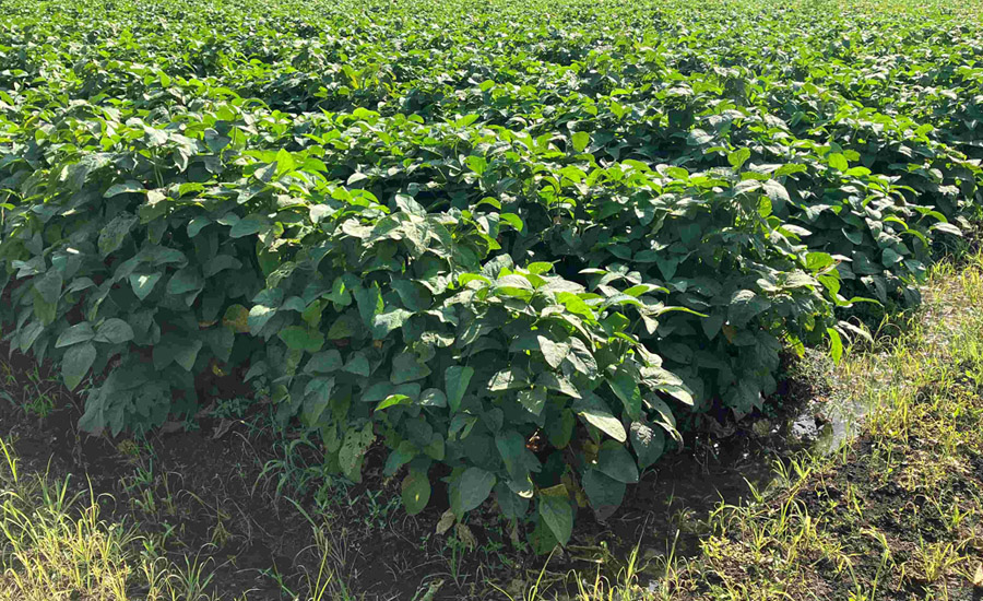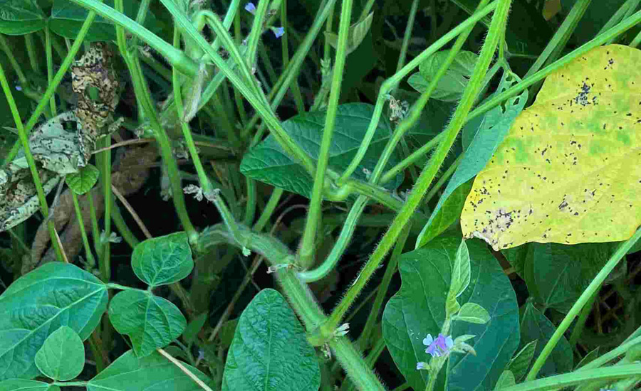 莢も順調に出始めて、遅咲きの花もまだ咲いている黒豆畑。