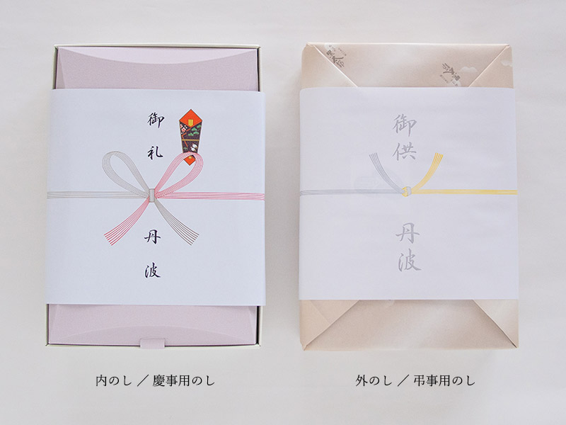 丹波の黒太郎では、通常「内のし」でご用意しております。