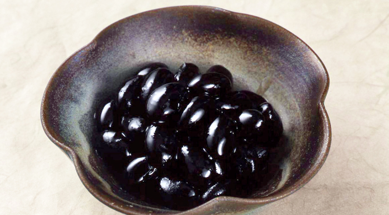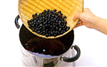 黒豆を親指と人差し指ではさみ、押してみて横にぐしゃっとつぶれるくらいまで煮る。皮が破れ身がつぶれずに出るようならまだ早いのでさらに煮る。