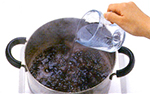 水を加えることによって湯の温度を下げ、黒豆の表面だけが煮えすぎず、中まで均一に柔らかく煮えるようになります。