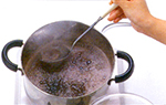 ※ボールに水を張り、アクをすくう度におたまを水に通し、アクを落としてきれいにする -