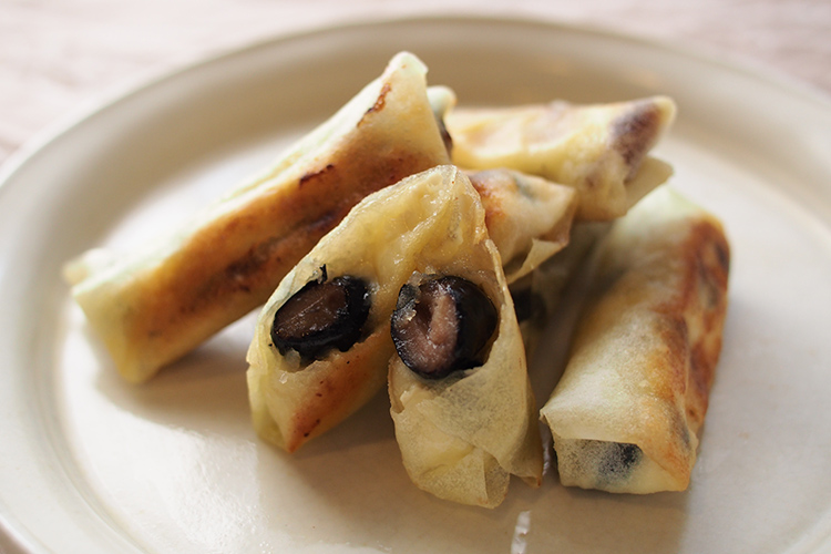 春巻の皮で簡単に作れる、黒豆入りのおやつです。