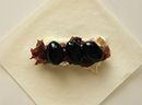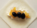 (1)の皮の真ん中にチーズを載せ、ふくふくを3、4粒並べる。