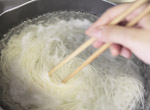 大きめの鍋に水を入れて沸騰させ、束を解いて麺がかたまらないようにバラバラと入れます。