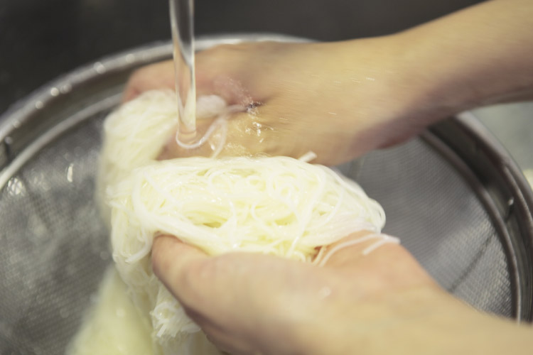 温かいにゅうめんやうどんも、できればひと手間かけてもみ洗いをした後温めなおしてください。