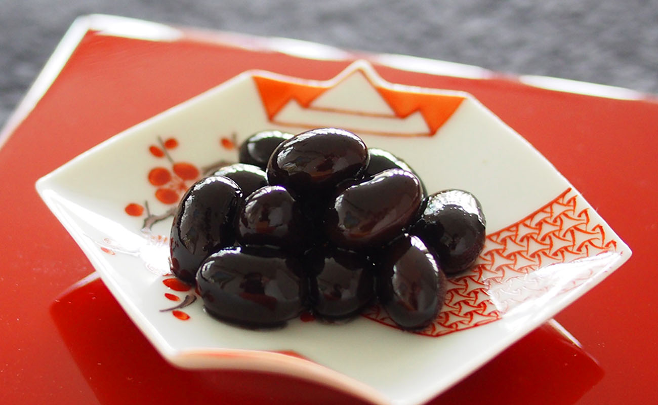 黒豆250gを水で洗う。鍋で水10カップを沸かし、沸騰したら火を止めて砂糖200g、しょうゆ大さじ1、塩小さじ1/4、重曹小さじ1/2、鉄まめ君(またはさびた釘など)を入れて、フタをしてそのまま一晩置く。