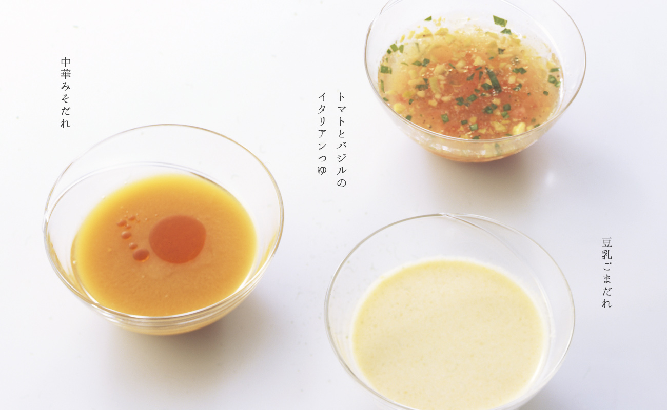 和・洋・中それぞれの味わいの3種類の変わりつゆをご紹介します。